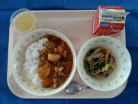 麦ごはん 牛乳 山小カレー たまごと野菜のサラダ りんご |