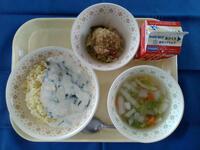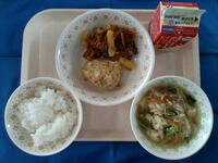 発芽玄米ごはん 牛乳 いわしのかばやき ひじきの五目煮 豆乳仕立ての野菜汁 手作りグレープゼリー |