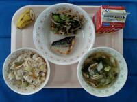 吹き寄せごはん 牛乳 さばの香味焼き 野菜のいそかあえ だし香る白菜のすまし汁 バナナ |