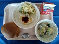 ごはん 牛乳 ししゃもチーズ春巻き もやしときゅうりのナムル チンゲンサイと豆腐のスープ みかん |