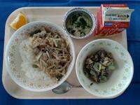 ねぎ塩ぶたどん 牛乳 ちゃわん蒸し ひじきとさつまいものサラダ はやか |