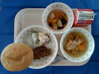 【のだの恵みの味わう給食の日】 クリームライス 牛乳 とり肉の香草パン粉焼き シューブレゼ ガルビュール |