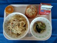 和風きのこスパゲティ 牛乳 山小ポテトパン わかめとツナのサラダ みかん |