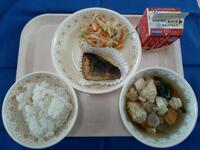 ごはん 牛乳 豚肉とごぼうのつくね キャベツのおかかあえ じゃがいもとたまねぎのみそ汁 バナナ |