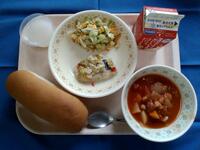 ごはん 牛乳 いわしのかばやき さつまいもサラダ キャベツのみそ汁 |