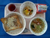じゃこトースト 牛乳 ポテトのカラフルサラダ キャベツとウィンナーのスープ あじさいゼリー |