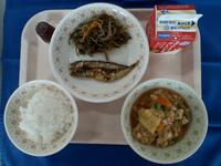ごはん 牛乳 ししゃもの南蛮漬け くきわかめのきんぴら 厚揚げのそぼろ煮 ひとくちぶどうゼリー |