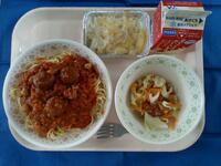 スウェーデン風スパゲティ 牛乳 ヤンソンフリステルセ(スウェーデン料理) キャベツとカシューナッツのサラダ |
