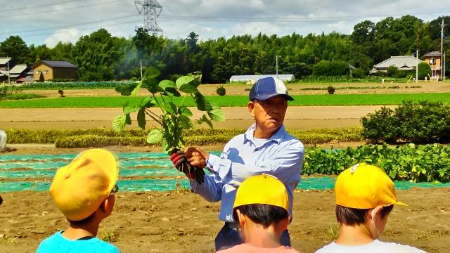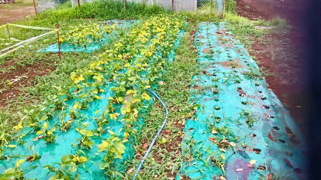 5月17日に植えた「えだまめ」ですが、お世話になっている「杉下さん」が見に来てくれました。「順調だね」と言ってくれました。「杉下さん」の家では、朝5時に起きて、「えだまめ」を収穫しているそうです。きょうは、朝とれた「えだまめ」を持ってきてくれました。