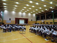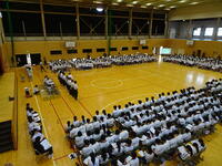 本日は、前期終業式が行われました。また、大会等の表彰がありました。柔道部、ソフトテニス部、駅伝部や陸上部などの表彰がありました。また、夏休みの課題で提出した「読書感想文コンクール」、そして10月6日に行われた第30回東関東マーチングコンテスト金賞受賞の表彰も行われました。