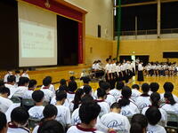 終業式では、各学年の代表者が「前期の振り返り・後期に向けて」を発表しました。どの学年も前期を振り返ることができ、今後に向けた立派な発表でした。また、生徒会本部役員や専門委員会委員長への感謝状が贈られたり、新役員へ任命状が渡されました。