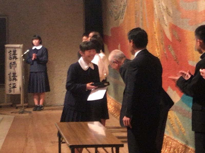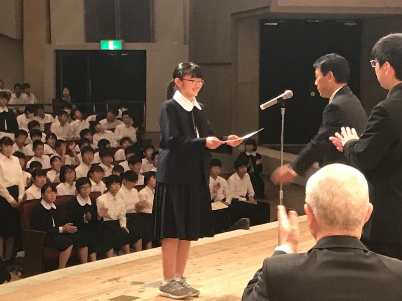 校長先生からは、オーストリアの心理学者で日本でも「嫌われる勇気」という本やドラマでも知られた、アルフレッド・アドラーの言葉が22個紹介されました。その中から「一番気に入った言葉について先生と語り合ってください」と課題が出されました。最後に前期の各委員会委員長に感謝状が贈られ、一人ひとりから言葉をもらいました。みな、リーダーとして学校を引っ張ってくれたのですが、他の生徒への言葉は感謝の言葉ばかりでした。一中の委員会活動のすごさ、ここにあるのだなと感心してしまいました。委員長の皆さん前期ありがとございました(^o^)