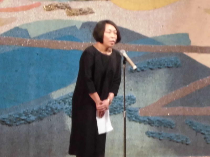 贈呈式の後は、市長より、被災地の状況やとにかくブルーシートがなくて困っているとのお話を頂きました。「このお金でブルーシートを買わせてもらいたい、いいかな」と声をかけて頂き、生徒会のメンバーも「よろしくお願いします」と頷いていました。このときは表情が真剣になっていました。