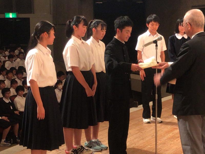 夏休み明けに行われた、生徒会本部役員改選選挙。当選した生徒たちに校長先生から任命書が手渡されました。全校の前で決意のべ、心を新たにしているようでした。