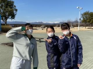 ソフトボール部は試合後、青い空と白い雲をバックに青春満載のショットです(^_^)/