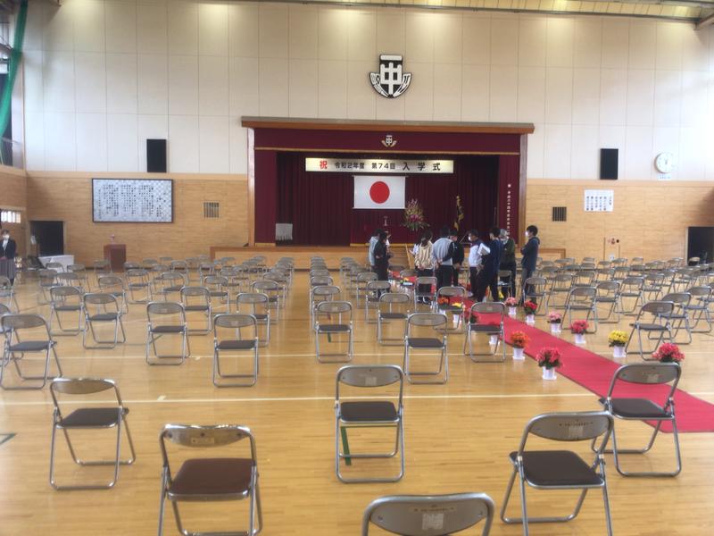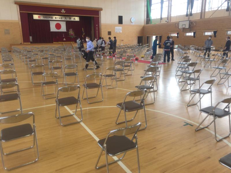 本日行われます入学式ですが、野田市新型コロナウイルス対策本部会議からの指示で、体育館での椅子の間隔を倍にして感染対策をさらに施して行うよう指示がありました。その結果として、入学式を2部制で行い人の密集率を更に減らす対策をとることとなりました。