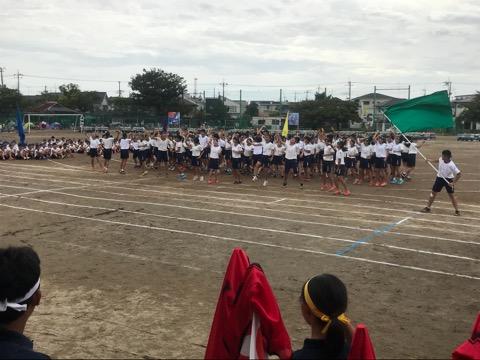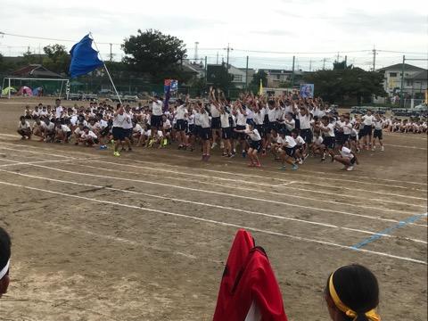 ★そして、全校応援が始まりました。応援団長の指揮の下、校歌を熱唱です(^O^)