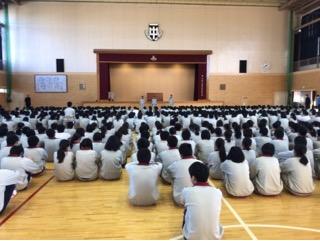 本校は2学期制ですので、始業式というわけではありませんが、年の初めというけじめの日になります。各学年の代表生徒が今年の抱負を語ってくれました。その中で、「自分で考えて行動していきたい。すべてのことに対して、他人事ではなく、自分事として捉え、行動していきたい」というものがありました。とても素晴らしい決意でした。我々大人も見習いたいと思います(^^)