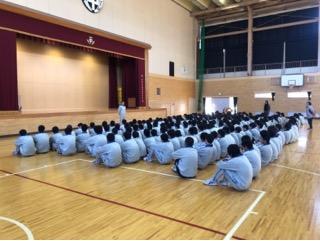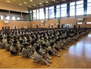 ★校長先生からも新年のあいさつがありました。新年4日に学校に来たのですが、その時立ち止まって「明けましたおめでとうございます。今年もよろしくお願いします」と丁寧にあいさつしてくれる生徒が何人もいました。と嬉しいお話がありました。その話を集中して聞く生徒たち!