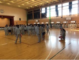 ★2019年が始まりました。一中も今日から再開です。生徒たちはいつも通り登校し、いつものように体育館に集まってきました。いつものようにキリリと締まった表情です!