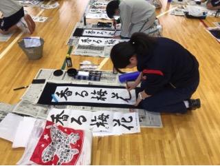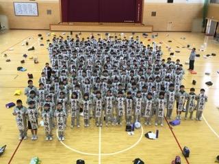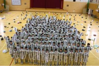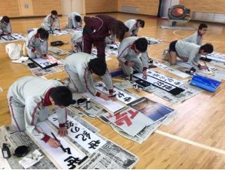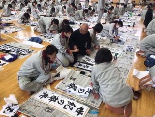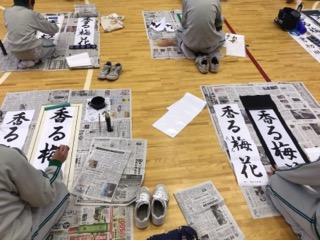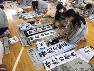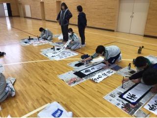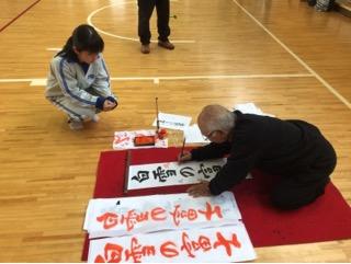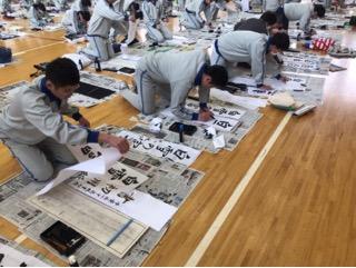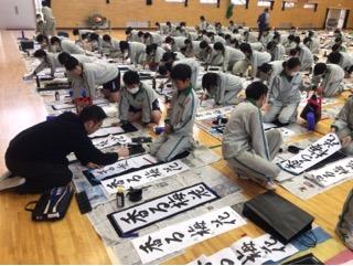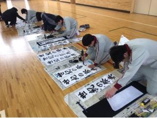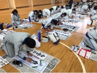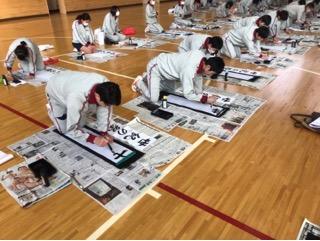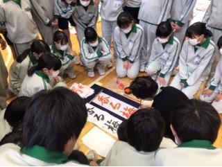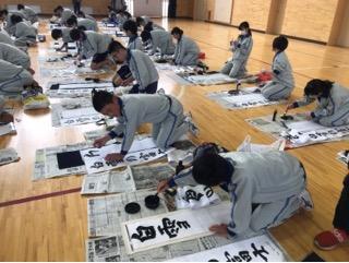 ★昨日10日は全校での席書会(書初め)が行われました。まずは1,2校時、3年生の登場です。