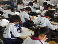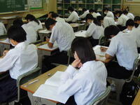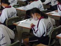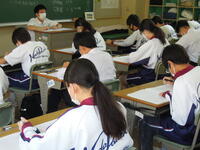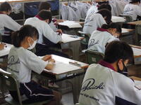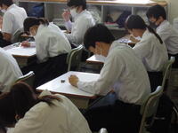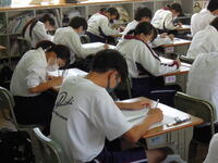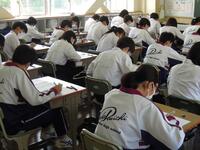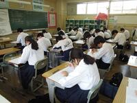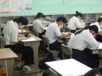 1年生にとっては中学校で行う初めての定期テストです。どのクラスも緊張した雰囲気で取り組んでいました。