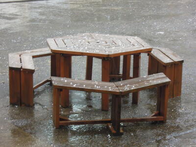 職員室でテストの採点を行っていると、黒い雲が… そしてバチバチと窓をたたく音が・・・