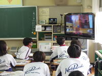 今年度も新型コロナウイルス感染防止のため、体育館ではなく、パソコンルームの生徒会・議長と、各教室をmeetでつなぎリモートで行いました。