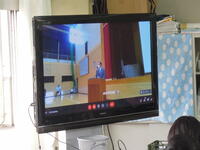 今日の進路保護者会は、保護者は体育館で、生徒は各教室でリモートで話を聞きました。