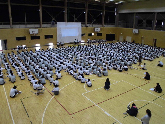 全校生徒が夏休み前と同じ姿で体育館に集まりました。校長先生からは「今ここに、皆さんの元気な姿があることをとてもうれしく思います」とはじめのあいさつがあり、続いて「部活動の件では、葛北大会や新チームでの頑張り」を讃えました。また「文武不岐」(ぶんぶふき)というお話がありました。その後の学級では、担任とその話で盛り上がったクラスもあったようです(^o^)