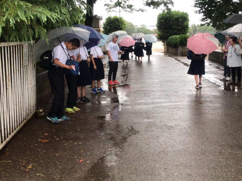月曜日の朝は大人でも会社に足が向かないもの。ましてや、梅雨真っ只中の梅雨らしい雨が降る月曜日です。なかなか元気も出ないでしょう。そんな朝ですが、あおいそら運動上町支部のみなさんと本校生徒会とのコラボレーションで、朝のあいさつ運動を行っています。今日は、そんな2週に一度の月曜日です。生徒たちは、笑顔であいさつをくれる地区の皆さんから元気をいただいています。いつもありがとうございます(*^_^*)