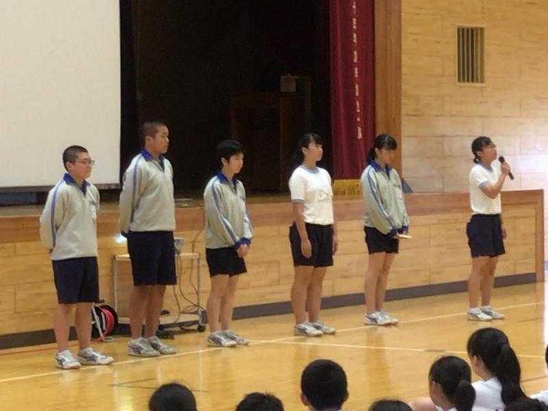 そして、4月からここまでの委員会活動の成果と課題を各委員会の委員長が発表してくれました。多くの成果が報告されたと同時に夏休み明けに向けて、更に高い目標が示されたり、基本の大切を訴えたりと充実した内容となりました。