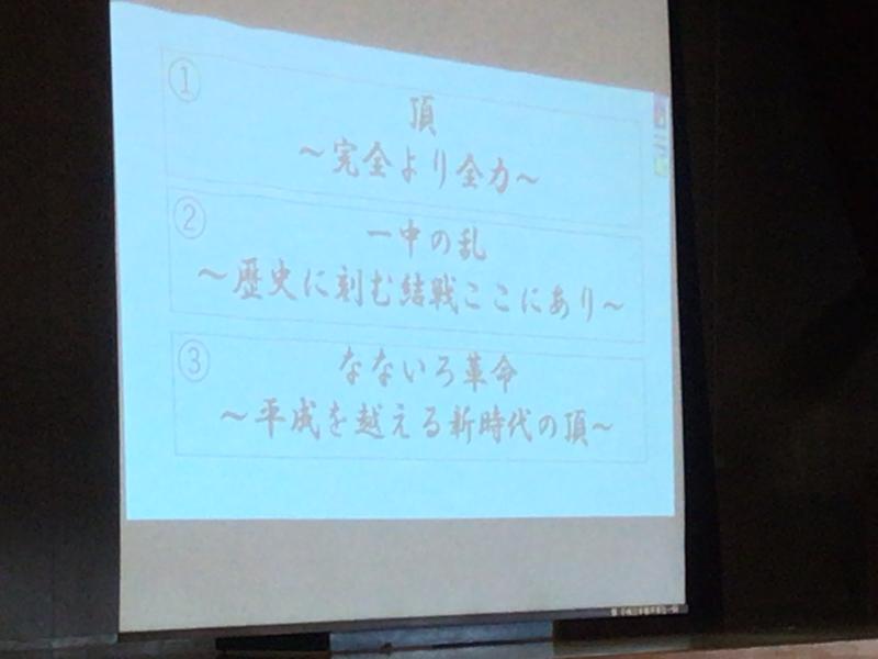 決定したのは、「一中の乱」~歴史に刻む結戦ここにあり~!です。 「結戦」という言葉は本来「決戦」と書きますが、あえて「結」という字をつかっているとのことです。