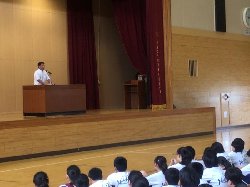 最後は校長先生より「命の繋がり」という話がありました。相田みつをさんの誌を紹介し、戦争の話を交え、今の皆さんの命は両親からいただいたもの、その両親にも両親がいて、さらに・・・と数えていくと、一体どれだけの命が繋がれてきて、今の皆さんの命があるのかと。この夏休みは、修せ記念日もあります。是非、命について考えてみてほしい、そして一歩踏み出せる夏休みにしてくださいと締めくくりました。