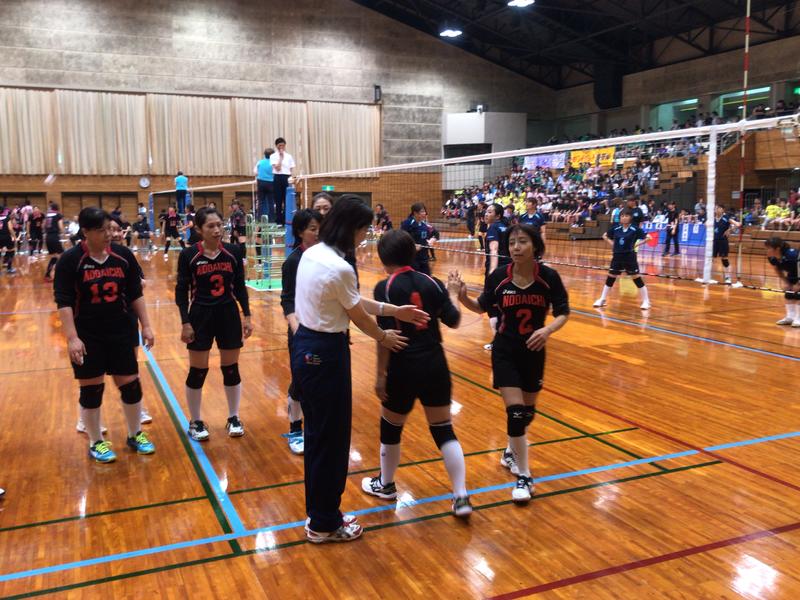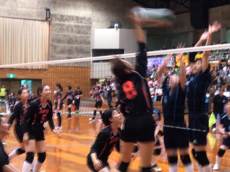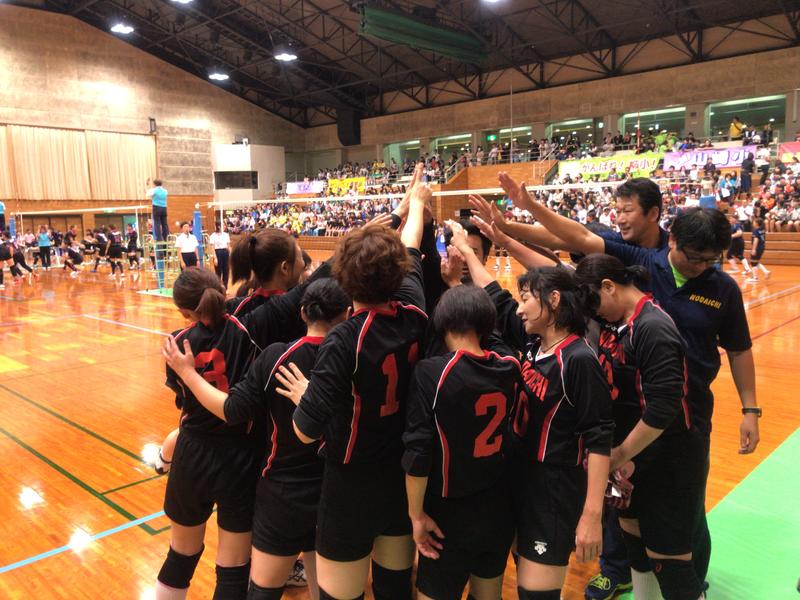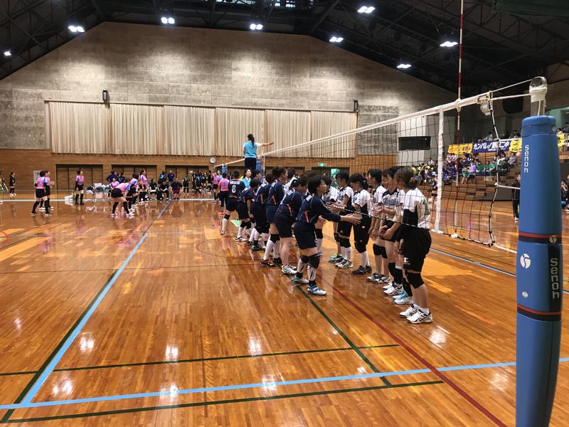 スパイクが決まり勝利を収めました。応援席へあいさつし次に備えます。大声援ありがとうございました(^o^)