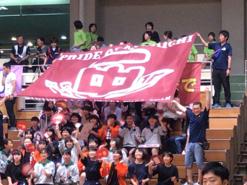 さて、ベンチ前では、決まったときには笑顔で、と監督、キャプテンから声がかかりました(^o^)応援席も日本代表さながらの一中フラッグが掲げられいよいよ第1試合の開始です!
