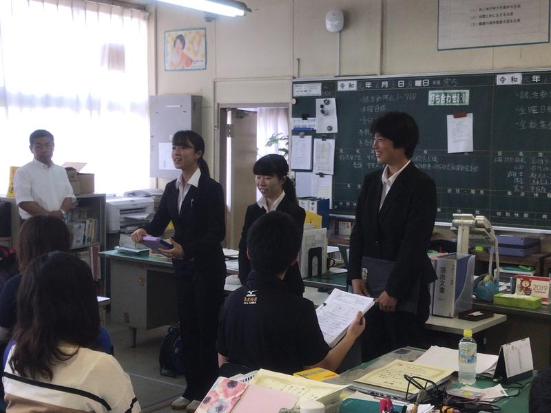6月最初の月曜日、なんと元気はつらつな挨拶の声が聞こえるかと思ったら教育実習生の3人が・・・!