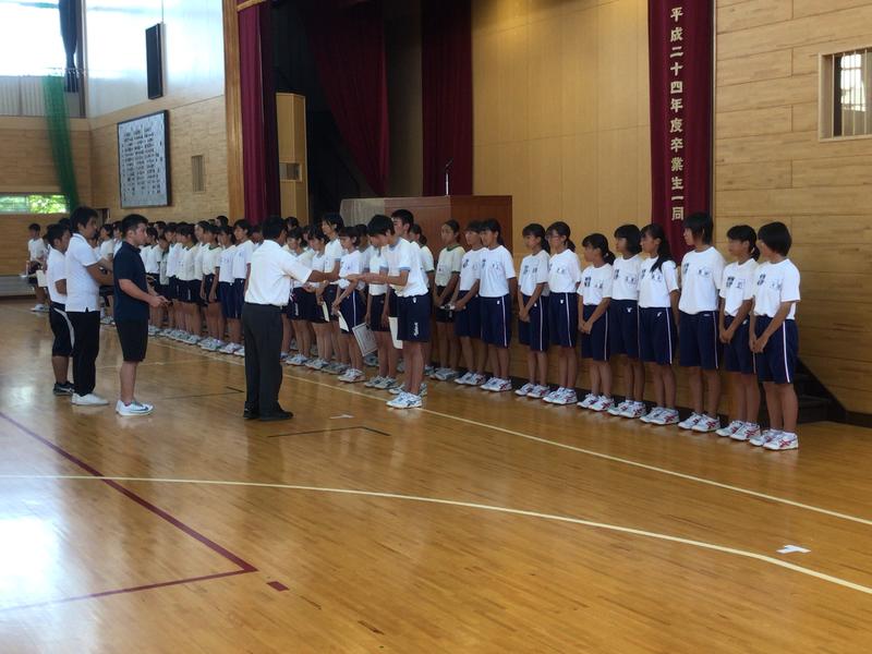 早速、いつもの通り表彰です。今回は期間も長く、大会も多く、ご覧の通り多くの生徒が表彰を受けました。陸上部競技部の全国大会や吹奏楽部の東関東大会出場も含まれています。皆さんおめでとうございます(^_^)/
