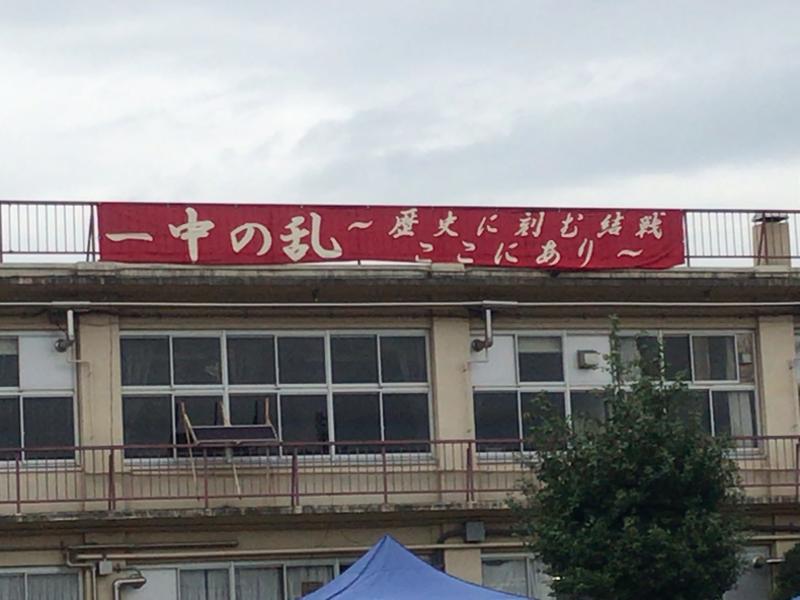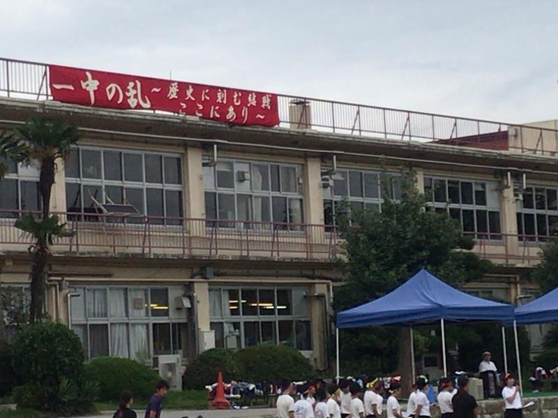 令和元年度、もちろん令和初の運動会!テーマはご覧の通りです。以前、このテーマを生徒の全校討議で決定したシーンをホームページでご紹介しました。そのテーマを生徒たちが横断幕にして校舎屋上に掲げての練習開始です。なんと素晴らしい(^_^)/
