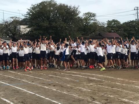 ★選手一人ひとりの紹介が終わり、全校応援が始まりました。VIVA一中~それ~\(^_^)/