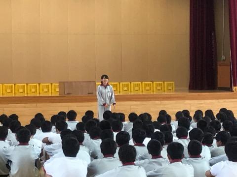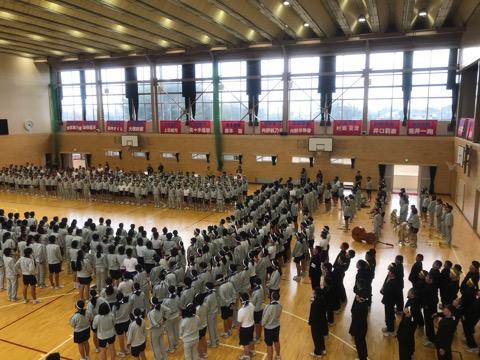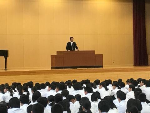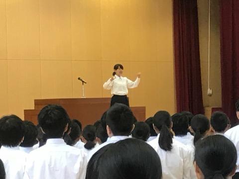 ★校長先生の話。「なぜ読書をするのか」        ★全校による校歌斉唱!新全校歌声委員長