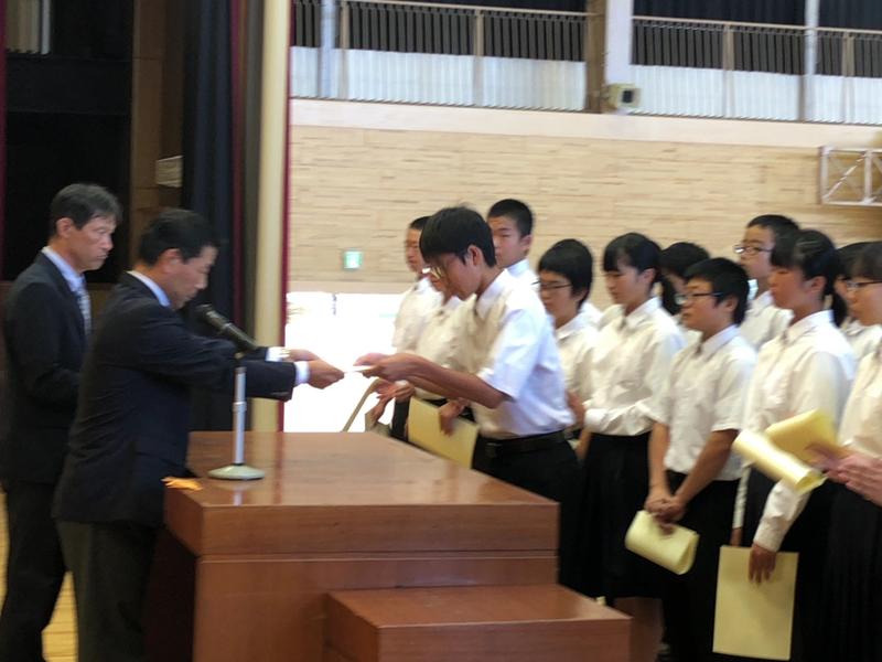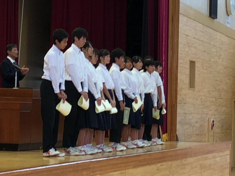 ★終業式後には、今まで一中をリードしてきた各全校委員長の表彰式が行われました。感謝状を校長先生から受け取る表情に、今までの取り組みの達成感、充実感を感じました。いままでありがとう!これからも後輩を陰ながら支えてください。よろしくお願いします(^_^)