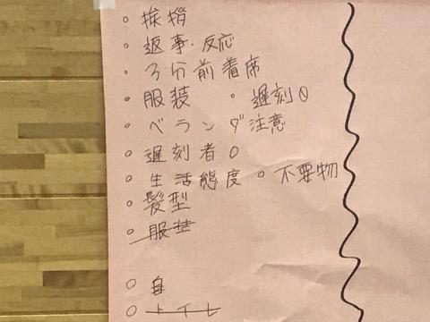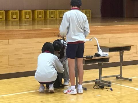 ★続いてのプログラムは、全校討議です。全校生徒が6つの何処かの委員会に所属し、それぞれの活動の現状や問題点、改善策などを話し合います。生活委員会と給食委員会の討議内容が模造紙に書かれています。なかなかなもの!(^_^)
