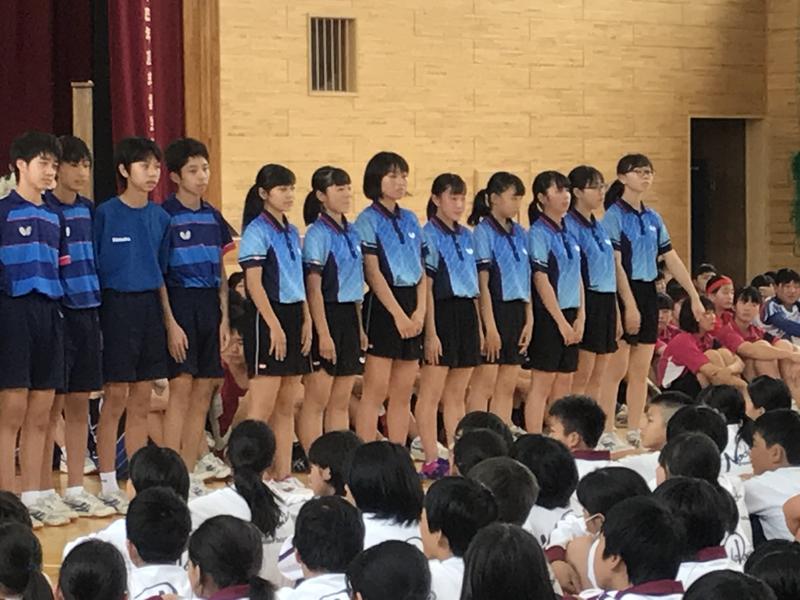 各部の発表です(^_^)/先陣を切って陸上競技部!続いてサッカー部、男女ソフトテニス部!