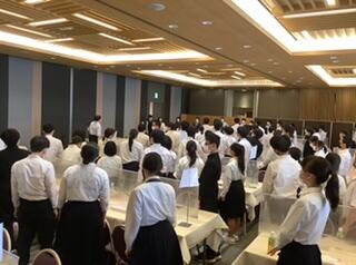 意見に対する歓声や拍手が中庭に響いていました。学級・シスターでの話し合い、生徒会や議長の準備等がしっかりしており、また、1年生にとっては初めての生徒総会でしたが、しっかりと意見する場面が見られるなど、主体的な話し合いとなりました。