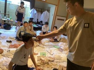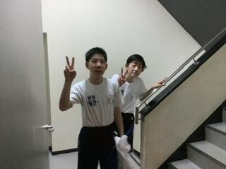 月曜日は部活動がなく、生徒が下校した後、体育館で行いました。