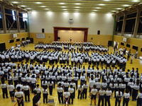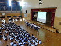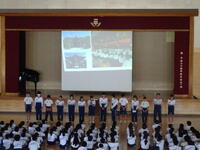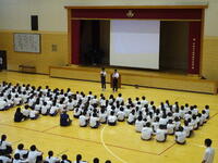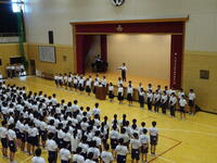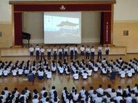 3年生から修学旅行の報告がありました。京都・奈良での様子がよくわかりました。生徒会からは、生徒総会の振り返りが発表されました。最後は、全校で合唱しました。