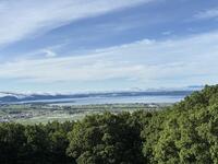 宿泊場所の北側には磐梯山が、南側には猪苗代湖が見えます。