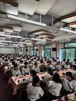 朝食の準備をし、食事を取り、閉校式のための準備をしています。今日は班別行動です。