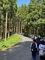 学年を2つに分けて、ハイキングとチームビルディングを行います。午前と午後入れ替えて、全員が行います。